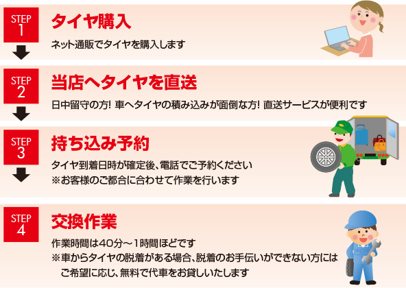 インターネットで買ったそのタイヤ、喜んで交換します!!